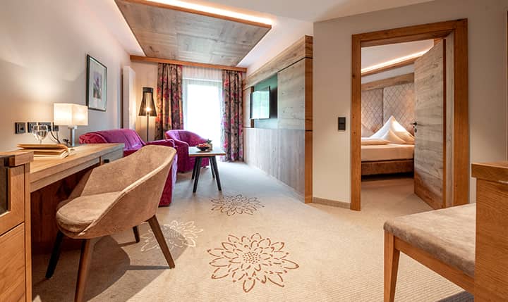Das Wellnesshotel aus Bodenmais verfügt u. a. über folgende Zimmer und Suiten