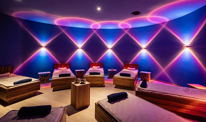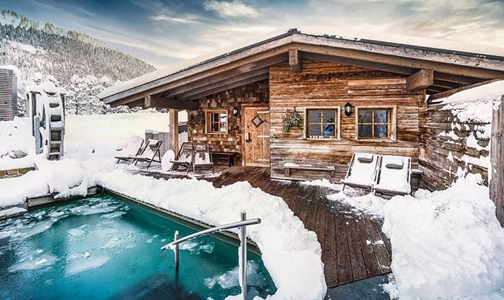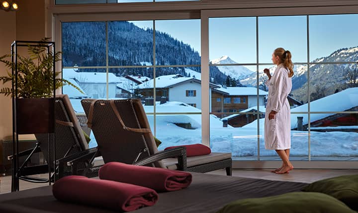 3.000 m² Alpin-Spa-Bereich mit beheiztem Innen- und Außenbecken sowie Saunalandschaft