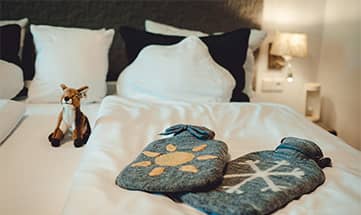 Genießen Sie erholsamen Schlaf im Zimmer Lichtnelke oder Almenrausch inklusive Rehlegger Genussküche.
